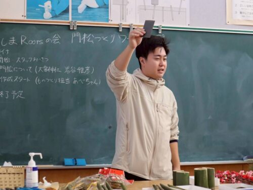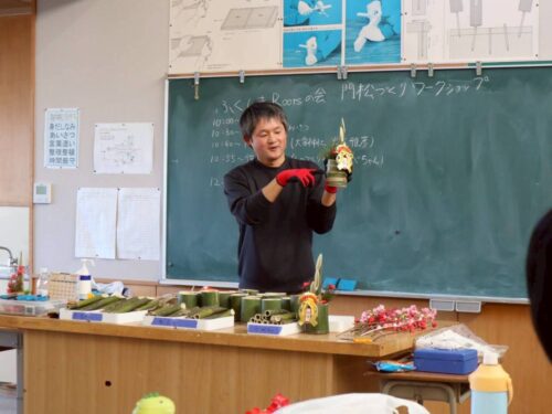 はじめに、大雷神社の神主でありRootsメンバーでもある岩谷雅彦さんから、門松の意味や、それぞれの飾りに込められた想いなど、とても勉強になるお話をしていただきました。門松の存在はもちろん知っていましたが、どう意味が込められているかは正直知らなかったなぁと…