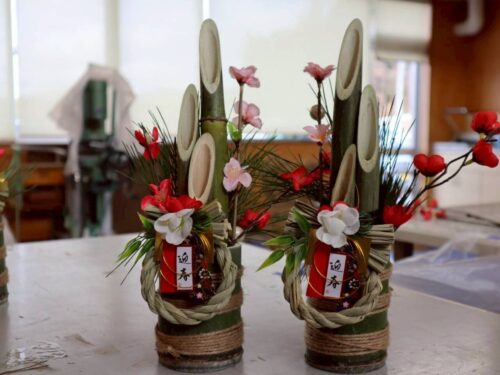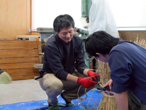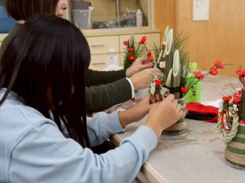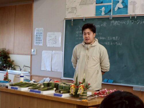 「できない…!」と言いながら何度も挑戦する人、途中であきらめる人もいましたが、装飾は自由。松や竹の配置、飾りのバランスなど、それぞれが思い思いの門松を仕上げていて、見ているだけでも楽しかったです。最終的にはそれぞれ立派な門松が完成しました。
